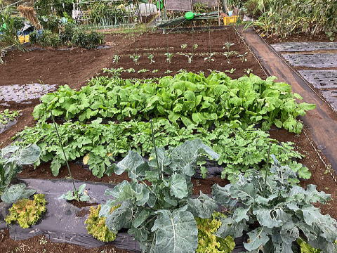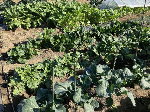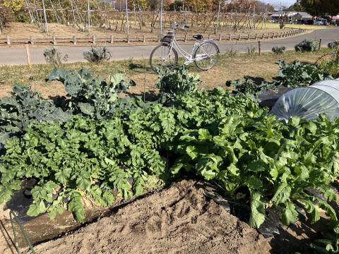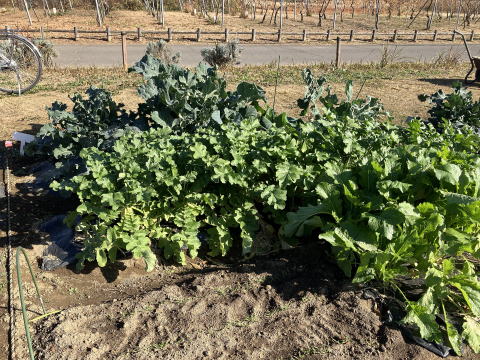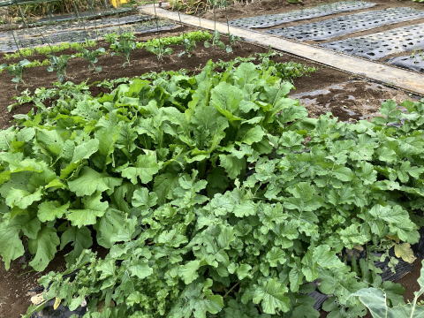 | 手前右:カブ、奥:ダイコン、その奥:ブロッコリー |