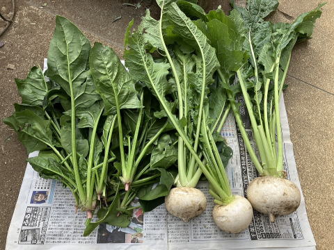 | カブ・ホウレンソウ収穫 |