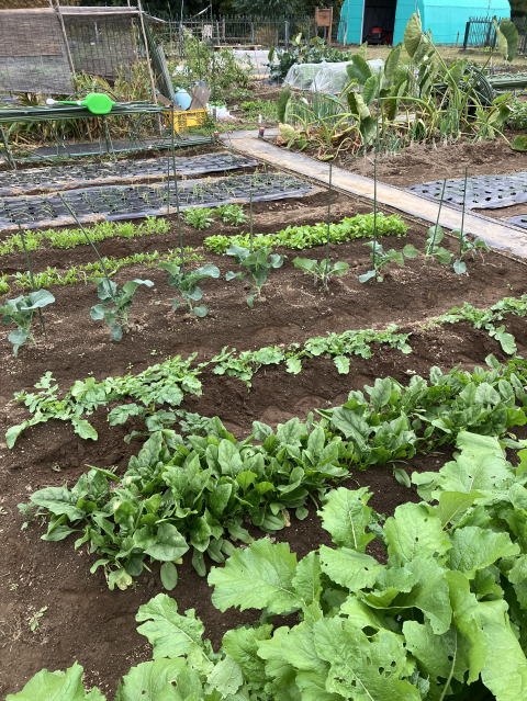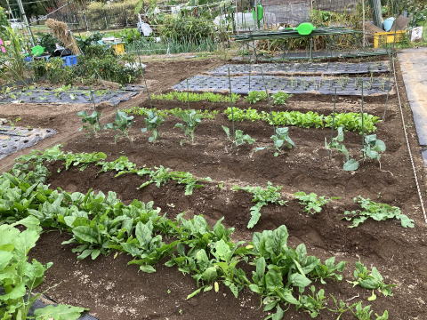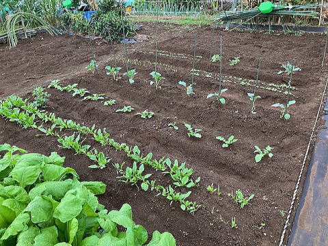 | 手前:ダイコン、奥左:ブロッコリー(植え付け) |