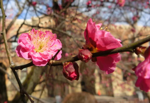 東本館前の紅梅