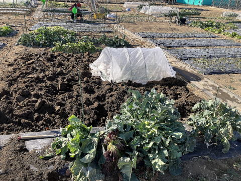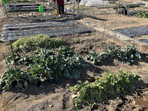 | 手前:ダイコン、奥左:ブロッコリー(植え付け) |